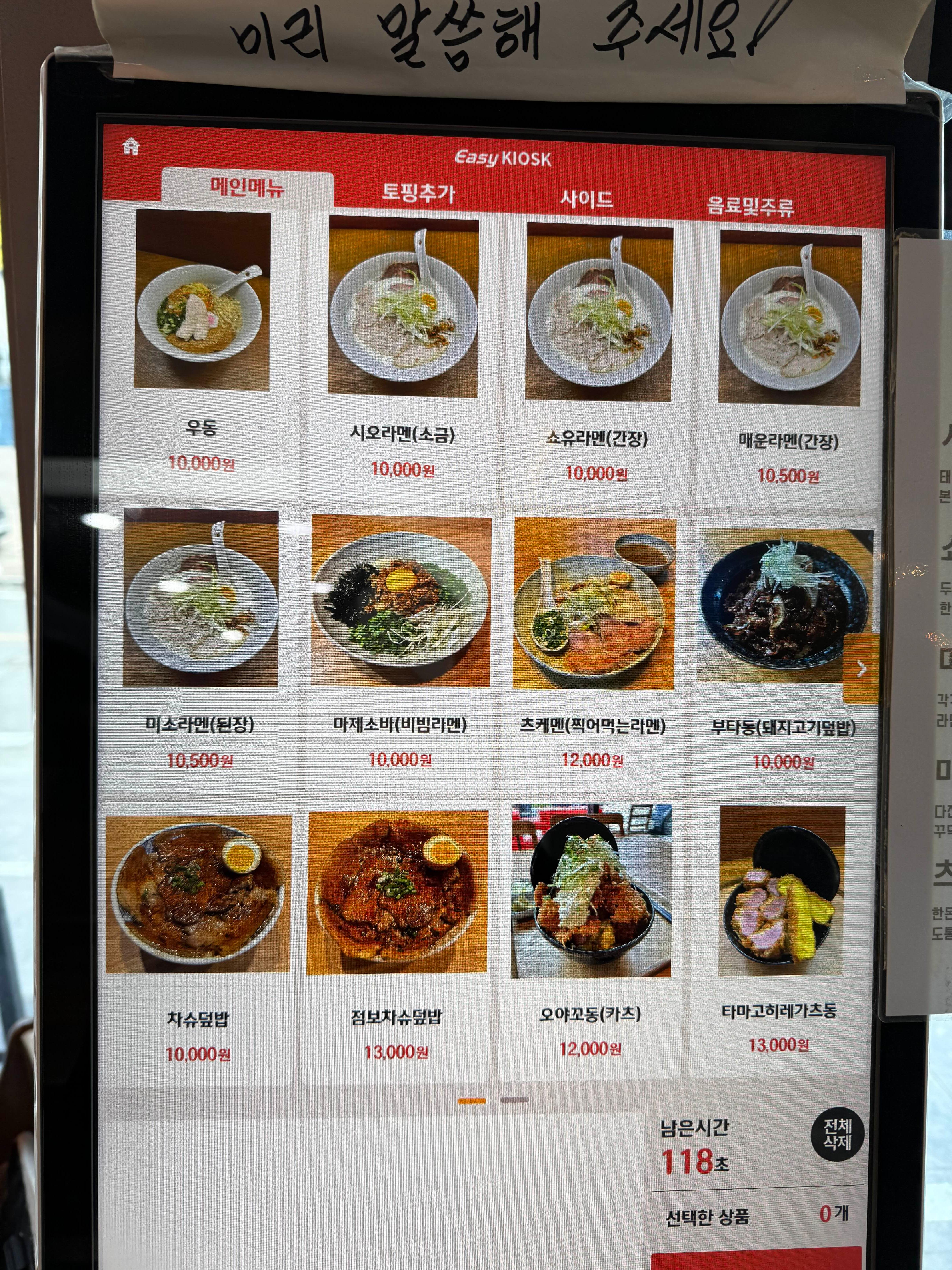 메뉴는 키오스크로 주문하면 된다.