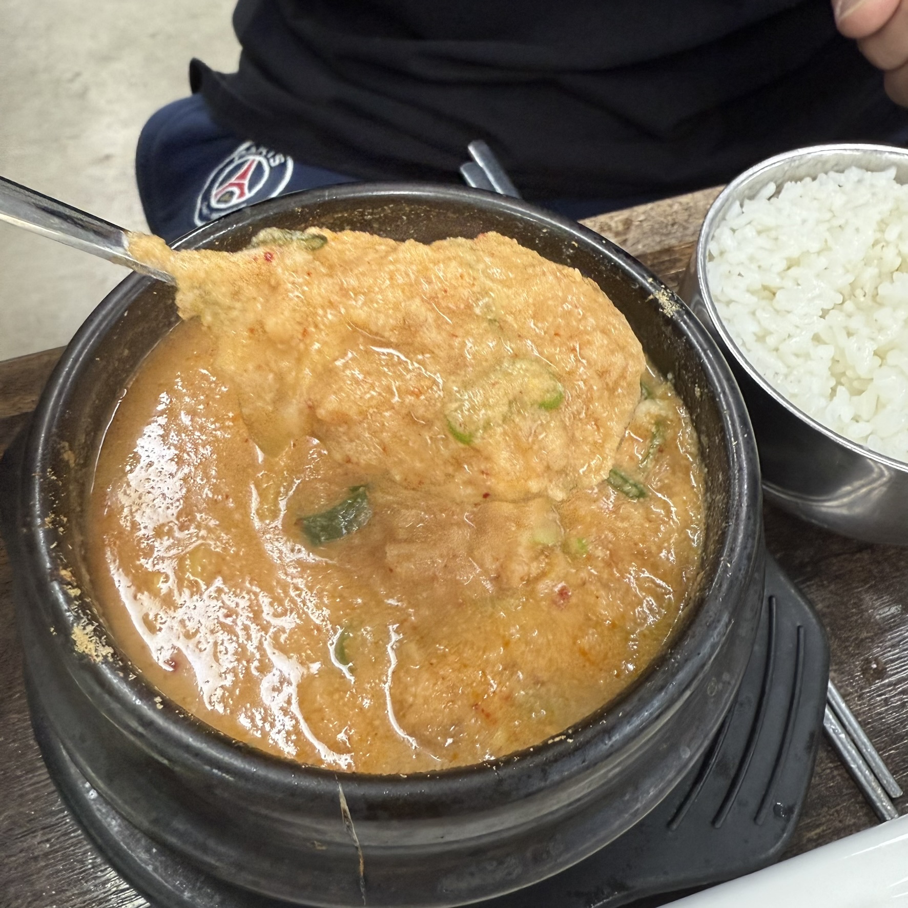 청국장과 비지찌개의 내용물이 가득하다.