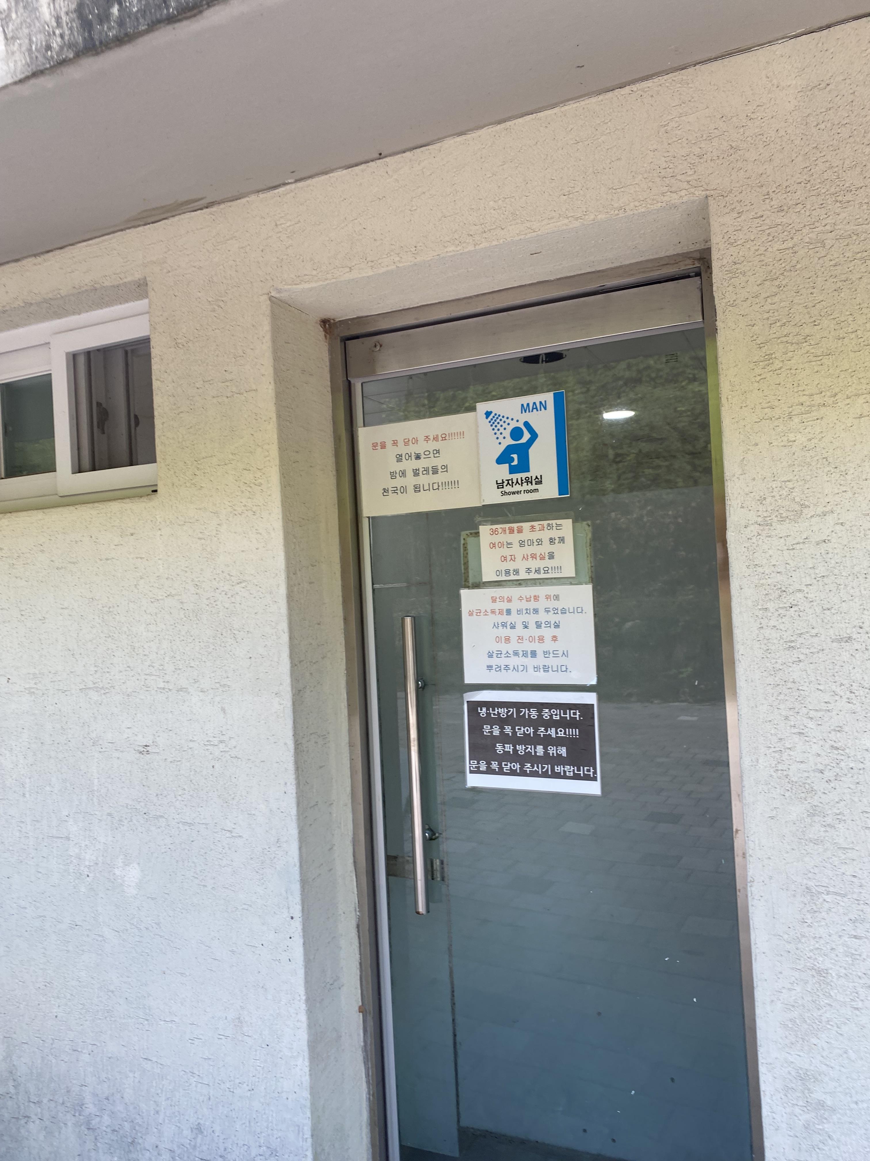 이 라인에 샤워장과 개수대가 나뉘어져 있다.